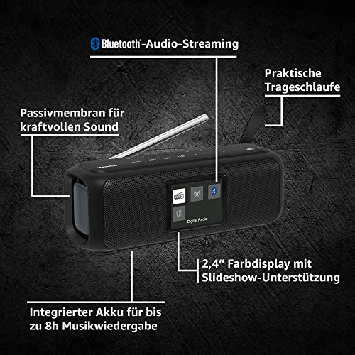 Karcher DAB Go - Altoparlante portatile Bluetooth e radio digitale DAB+, radio FM con display a colori da 2, 4", suono stereo da 5 Watt, batteria USB-C, colore: Nero