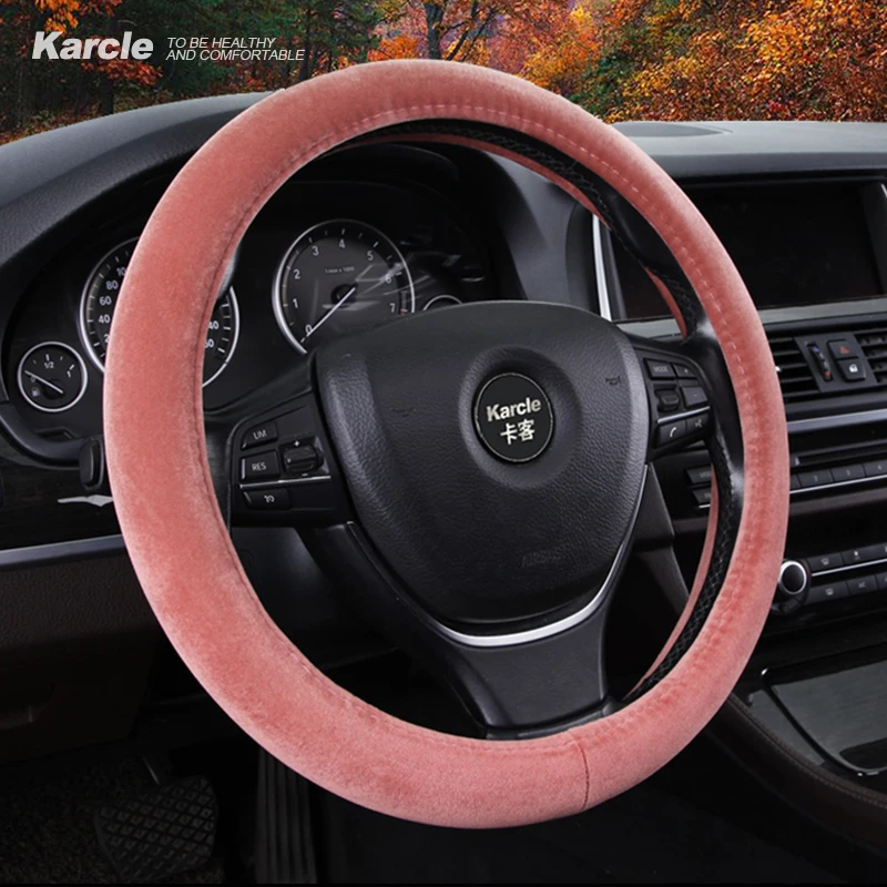 Karcle Velvet Steering Wheel Cover Protector Winter Soft Short Plush Wheel Cover 15 Inch Auto Car Styling