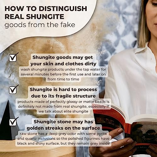 Autentico Le nostre piramidi di shungite sono fatte di vere pietre di shungite estratte dal deposito di Zazhoginsky in Carelia, l'unico deposito al mondo in cui viene estratto un minerale così straordinario. Siamo specializzati in shungite dal 2015. I residui neri e le striature dorate sulla superficie sono normali e sicuri e sono un segno di autenticità.