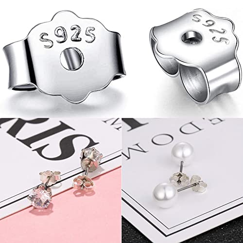 Facile da usare:10 paia di orecchini in argento sterling supportano la parte posteriore, è facile da usare per fissare la parte posteriore dell'orecchio, gli orecchini a bottone passano attraverso i fori sul retro dell'orecchio e quindi si fissano nella posizione desiderata, gli orecchini possono essere fissati perfettamente, sicuri e comodi.