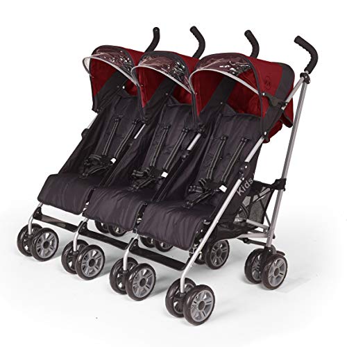 Kids Kargo - Passeggino per 3 bambini, colore: rosso