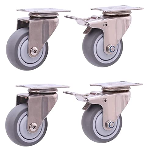KARISI Ruote per carrello, 50 mm, staffa in acciaio inox 304 resistente, 300 kg, in gomma silenziosa con freno girevole piastra piccola per tavolo, carrello da scrivania, culla, 4 pezzi, base mobile