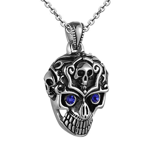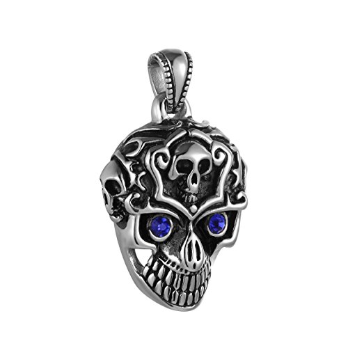 KARISMA uomini acciaio inossidabile pendente ciondolo collana - teste di morto CRIST All pietre con catena in acciaio inox ps108, acciaio inossidabile, colore: Blaue Augen, cod. PS108