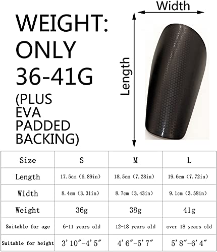 【Traspirante, altamente elastico e leggero】la combinazione di schiuma EVA e pellicola in polipropilene ad alta resistenza rende il prodotto traspirante e resistente. Un singolo cuscinetto pesa solo 40 grammi. La sua rete elastica garantisce che non si attacchi durante le partite di calcio.