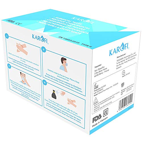 KAROFI - Mascherine Chirurgiche TIPO II MEDICO, 4 STRATI, BFE > 98%, testate e approvate, certificate CE EN14683: 2019, pacco da 50