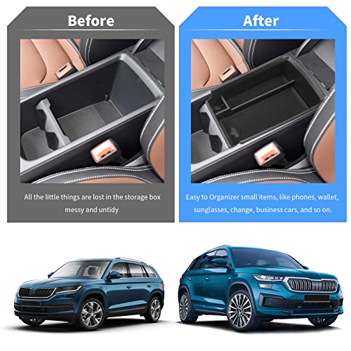 YEE PIN Per Karoq console centrale vano portaoggetti per braccioli, organizer Skoda Karoq 2018-2022 2023, scatola portaoggetti con tappetino antiscivolo accessori auto (nero)