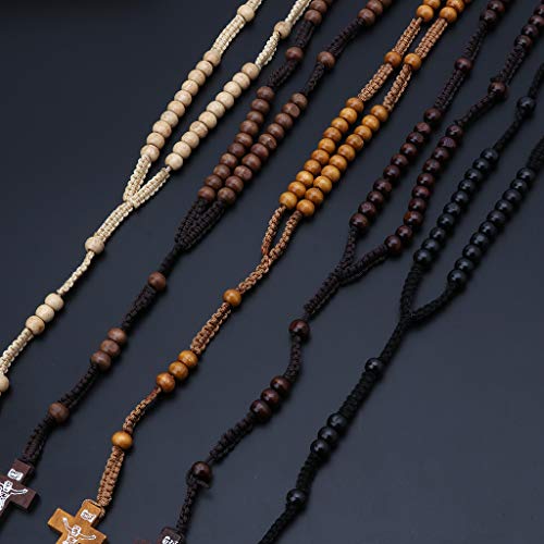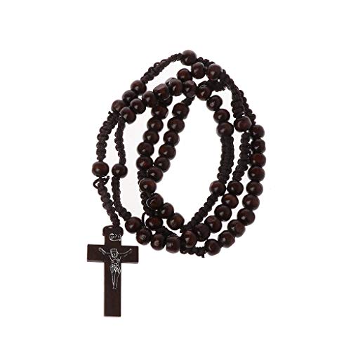 Karrychen Collane con Rosario di Perline di Legno con Impronta di Gesù Croce Gioielli Religiosi di Gesù - Scuro