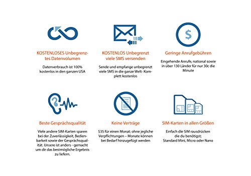 SIM Karte für die usa: Unbegrenzt Mobiles internet e SMS. einen Monat, nur 43 Euro