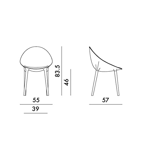 Materiale Seduta: policarbonato trasparente o colorato in massa. Struttura: policarbonato trasparente livello raggiunto