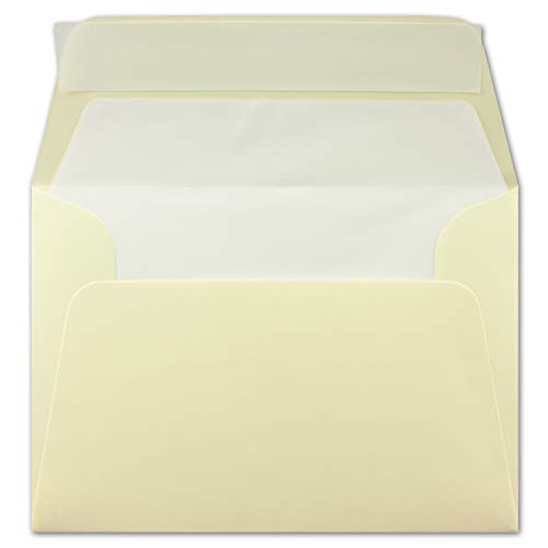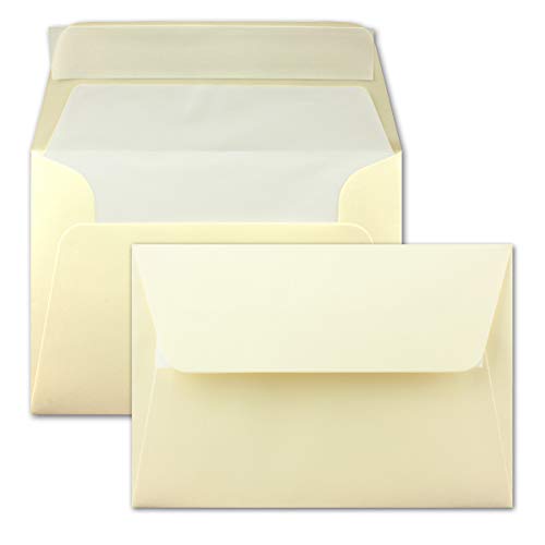 Karten und Co. - Buste per lettere, formato DIN C6-100 g/mq, 114 x 162 mm, carta colorata e con chiusura adesiva, colore: Bianco 25 pezzi Vanille - DIN C6 - Seidenfutter