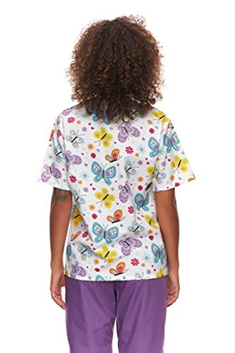 Kasacks - Camicetta da Donna a Maniche Corte, con Scollo a V, Diversi Motivi, Abbigliamento Medico, Camice per Studi di Cosmetici, Abbigliamento da Pratica, Polpo, 3XL