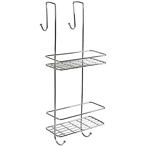 Kasahome Mensola Doccia Senza Foratura 2 Ripiani in Metallo Portaoggetti con Ganci Mensole Portasapone Cestino Docce Arredo da Bagno Multiuso Salvaspazio 59cm
