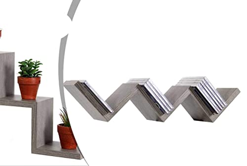 Kasahome Set 2 Mensole Zig Zag da Parete - Mensola Grigio Olmo da Arredamento - Scaffale a Scala - Pensile a Muro Moderno 59x12x12 (Olmo)