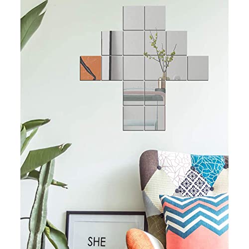 Kasahome Set 4 Pezzi Specchio Adesivo da Parete - Forma Quadrata senza Cornice - Adatto a Ingresso, Camera, Salone, Pub, Ufficio per da Muro 15x15x2 cm