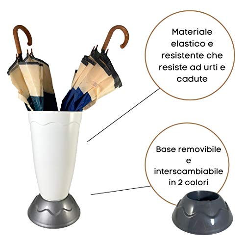 [PIOVONO VANTAGGI] La plastica con cui è realizzato il portaombrelli è leggera e resistente, non scolorisce e non si rovina, inoltre risulta anche elastica quindi attutisce i colpi in caso di caduta, senza ammaccare. Il portaombrelli economico Kasalingo è utilissimo e pratico da maneggiare