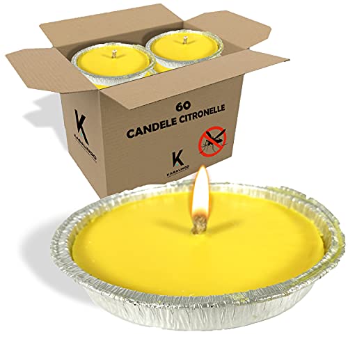 Kasalingo 60 Pezzi Candele Citronella in alluminio 14 Cm antizanzare da interno/esterno, Profumate, lunga durata Prodotto 100% Made in Italy.