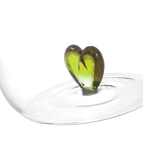 Bicchiere per acqua in vetro borosilicato, con piccolo inserto al centro a forma di cuore verde. Design romantico creato dalla designer Benny Setti in esclusiva per Kasanova.