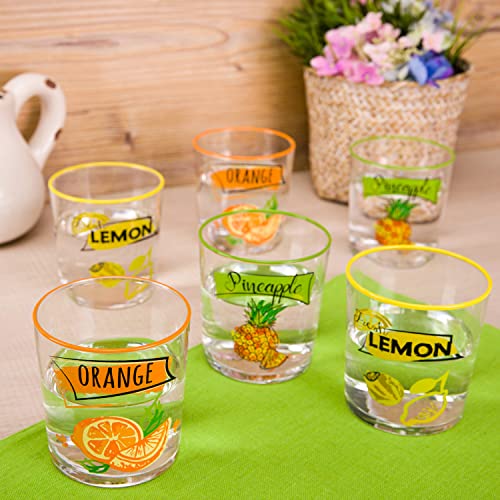Un fresco servizio estivo per 6 persone composto da bicchieri in vetro con decoro a tema frutta. Ideali per completare la tua tavola e gustare acqua, bevande e succhi. Capacità 300 ml.