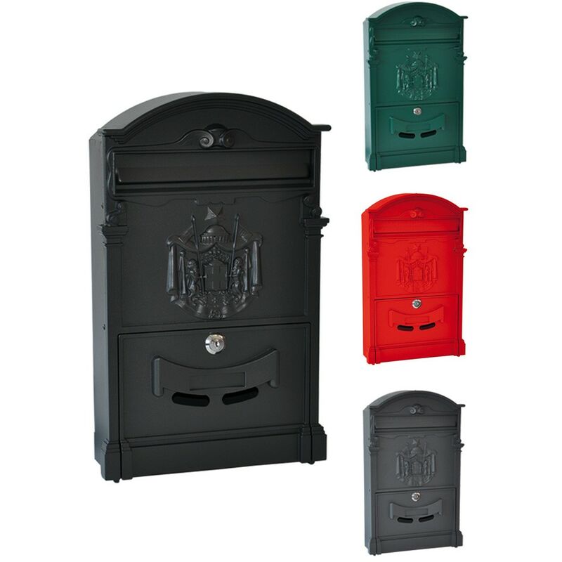 Frontale in alluminio, corpo in lamiera zincata. Si applica facilmente a muro, cancello, portone. Per la sua particolarità e bellezza é adatta ad ogni tipo di residenza. Dimensioni cm 25,5x9xH41.