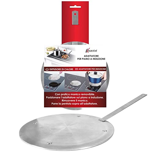Kasaviva Adattatore a induzione, disco convertitore per piastra di cottura a induzione, piastra di diffusione di calore, con manico 16cm 20cm 24cm (Diametro 24 cm)