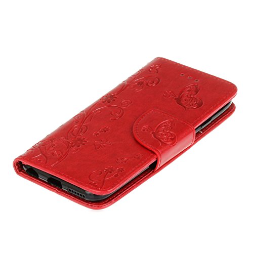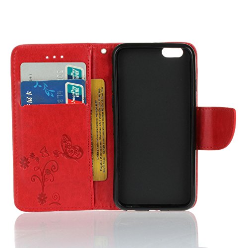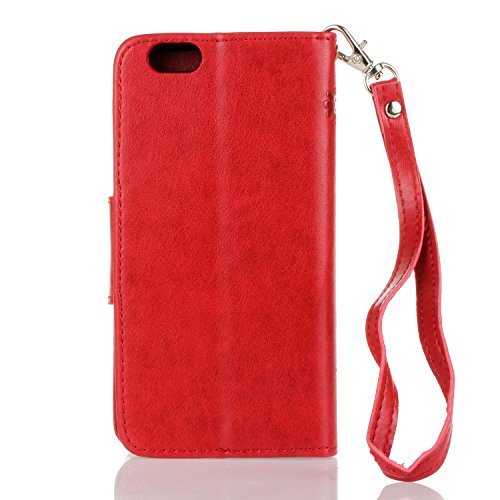 KaseHom Compatible for iPhone 6 Plus/6S Plus Cassa del Raccoglitore Stile del Libro di Chiusura Magnetica Folio Flip Antiurto Basamento di Protezione PU Case Cover in Pelle Shell - Rosso