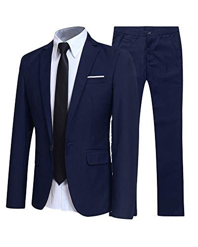 KasenA Abito Slim Fit Completo Uomo 2 Pezzi Elegante Blazer e Pantaloni Blu Navy 2XL