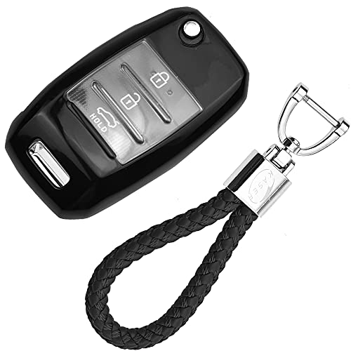 KASER Cover Guscio Silicone per Chiave Kia - Custodia in TPU Morbida Cromata per Telecomando Kia Sorento Sportage Rio Carens Cadenza Carnival Optima Protezione con Portachiavi (Nero)