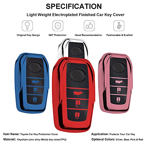 KASER Cover Guscio Silicone per Chiave Toyota - Custodia in TPU Morbida Cromata per Telecomando 3 Tasti Toyota Keyless Corolla RAV4 CH-R Prius Yaris Protezione con Portachiavi (Blu)