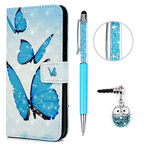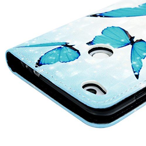 KASOS Cover P8 Lite 2017, Farfalla Blu Pittura a effetto 3D Custodia a Libro Protettiva in PU e TPU con Chiusura Magnetica Antiurto Antigraffio Flip Cover Huawei P8 Lite 2017