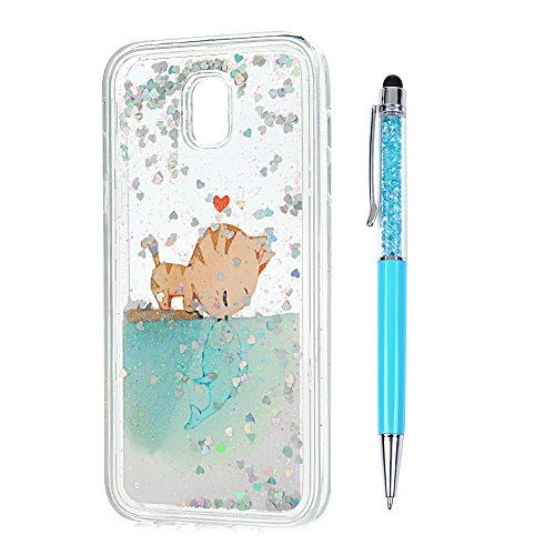KASOS J3 2017 Cover Silicone, J3 2017 Cover Trasparente Custodia Cover TPU Morbida Gatto Pesce Glitters Amore Bling Brillantini Liquido Rosa Quicksand Cover per Samsung Galaxy J3 2017 EUROPEA
