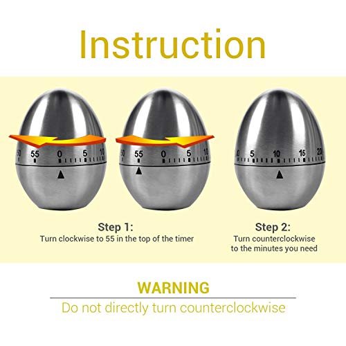 Turata Egg Timer è un timer meccanico e non richiedono una batteria. Quindi è ecologico ea basso consumo energetico. Ma non eseguire direttamente ruotare contro la direzione antioraria in Disem queste uova verranno danneggiate allarme.