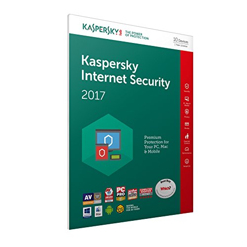 Kaspersky Lab Internet Security 2017 Base license 10user(s) 1year(s) CD - antivirus security software (Windows 10 Enterprise, Windows 10 Enterprise x64, Windows 10 Home, Windows 10 Home x64, Windows 10 P, Mac OS X 10.10 Yosemite, Mac OS X 10.11 El Capitan, Mac OS X 10.9 Mavericks, ENG, Multi, Base license, Android 4.0, Android 4.1, Android 4.2, Android 4.3, Android 4.4, Android 5.0, Android 5.1, iOS 8.0,)