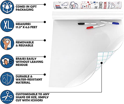 Kassa Rotolo di adesivo trasparente per lavagna bianca, larghezza 4 cm, lunghezza 1,4 m x 1,5 m, con 3 pennarelli cancellabili a secco, ideale per uso in aula, casa e ufficio, lavagna bianca