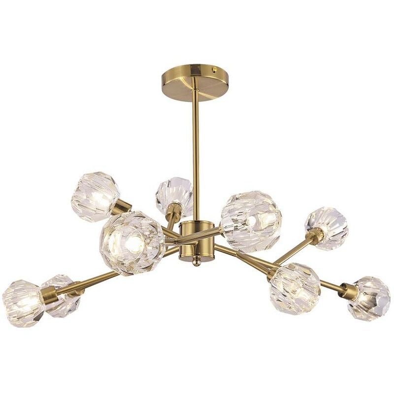 Cassia plafoniera G9 9X MAX 5W Dimensioni in mm: Altezza: 375 Diametro: 615 tipo di lampadina / Versione: G9 massima Potenza: G9 9X MAX 5W classe (a ++ a e): a ++ per posta dimmerabile: NO classe: IP20 materiale rivestimento: metallo Colore: oro vetro / materiale dello schermo: in vetro