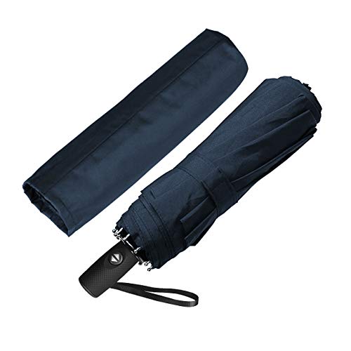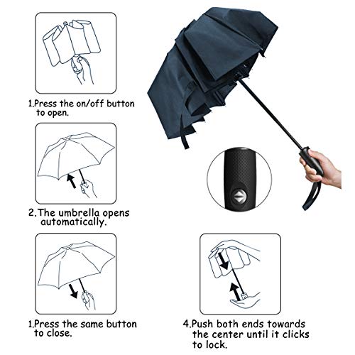 10 costole antivento e compatto: telaio fortificato a 10 costole, ombrello compatto pieghevole automatico di massima resistenza, resiste a forti raffiche senza rovesciarsi. Costruito con nervature metalliche e un albero in acciaio cromato 3 volte, punte in fibra di vetro leggere e flessibili, e telaio resistente alla ruggine e alla corrosione, difficile da corrodere.