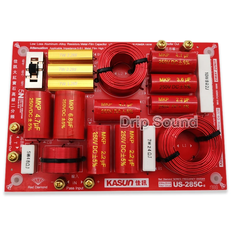 1pcs KASUN US-285C 2 Way 2 Unit 180W Hi-Fi Audio Speaker Frequency Divider Crossover Filters