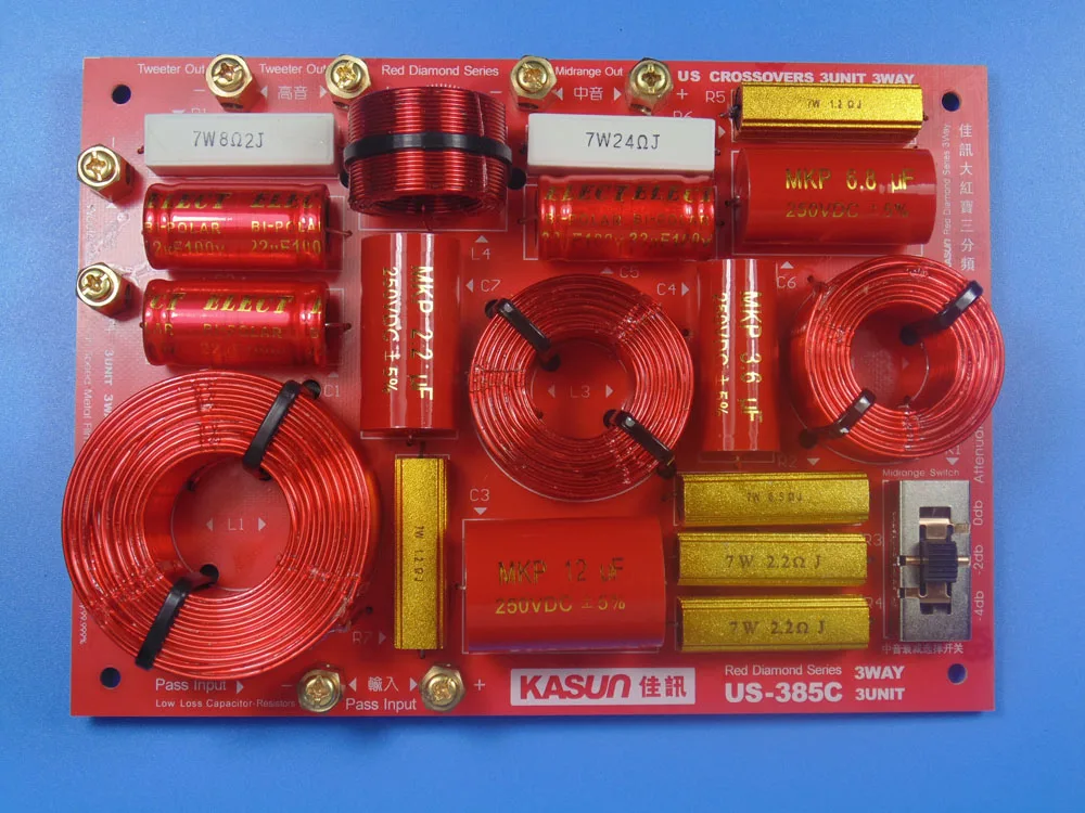 1pcs KASUN US-385C 3 Way 3 Unit 230W Hi-Fi Audio Speaker Frequency Divider Crossover Filters