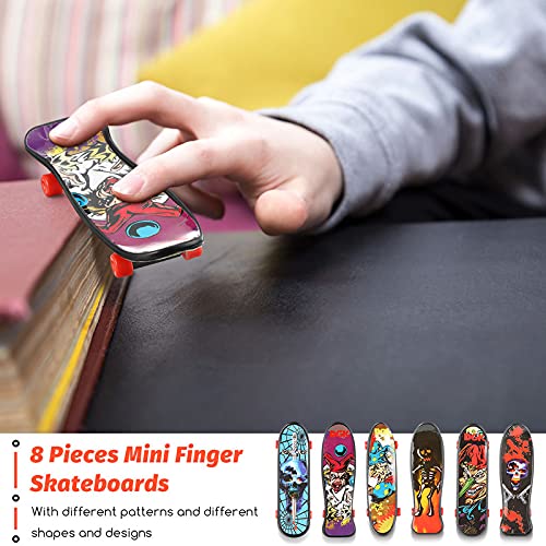 Kasyat 8 Pezzi Mini Skateboard per Dita Board per Dita Giocattolo Skateboard per Dita di Camion a Pressa di Ponte per Adolescenti Bomboniere Riempimenti per Borse