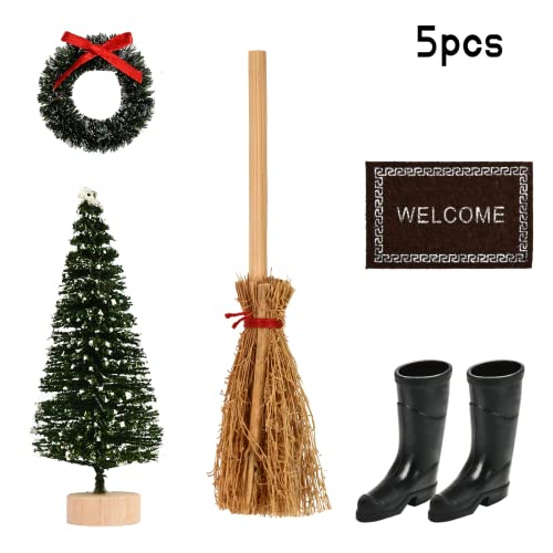 KATELUO Set di Accessori per Porta GNOME, 5 Pezzi Gnomi Porta delle Accessori, Alberi di Natale, Ghirlanda di Natale, Stivali, Tappeti, Scopa, Decorazioni per Casa delle Bambole