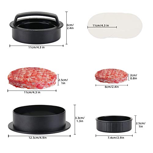 KATELUO Burger Press con 200 Fogli di Carta Antiadesiva, Stampo per Hamburger Normale,Set 3 in 1 Pressa per Hamburger per Mini/Classici/Ripieni Hamburger/Mgnon/BBQ/Cucina