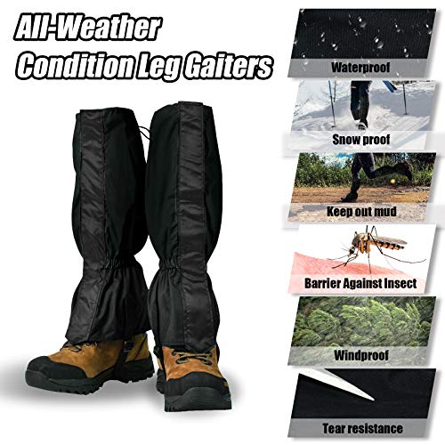 KATELUO Ghette Impermeabili, Ghette Impermeabili da Neve, Ghette Trekking Neve, Ghette Caccia Impermeabili, Ghette Trekking, Ghette per Arrampicata Escursionismo Camminata Aaccia (nero, L)