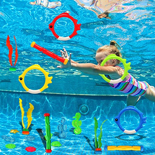 KATELUO Giocattoli da Immersione, 19pcs Giocattoli da Piscina, Anelli da Immersione, Giocattoli Immersione, Giochi Piscina Bambini, Giocattoli da Allenamento in Piscina, Giochi da Piscina per Bambino