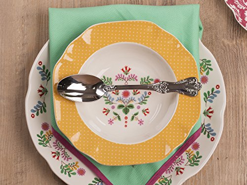 Colorato, vivace florals può essere visto decorare la pasta Bowl. Honey Mustard Yellow Border e polka dots Frame all' esterno e mostra l' influenza scandinava.