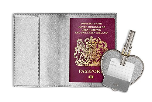 Katie Loxton, porta passaporto, con scritta "Adventure Awaits", colore carbone metallizzato