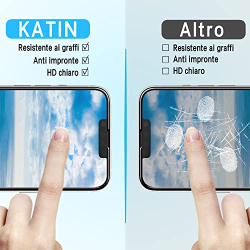 KATIN Vetro Temperato per iPhone 13, iPhone 13 Pro 6,1 Pollici Pellicola Prottetiva, Durezza 9H, 0,33mm Ultra Trasparente, Senza Bolle, Anti Graffio, Ultra Resistente