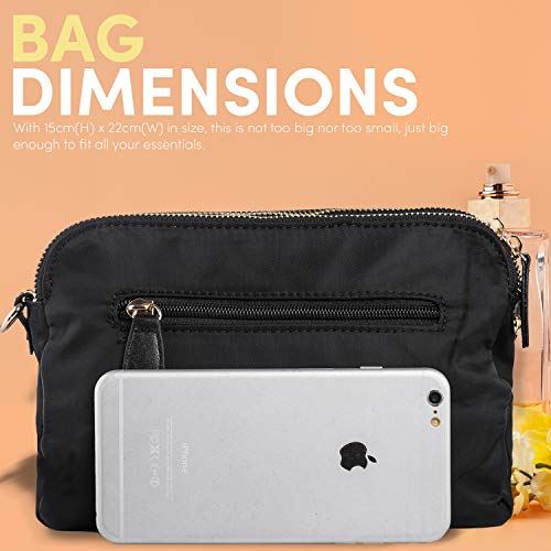Materiale esterno: nylon impermeabile. Materiale interno: tessuto di poliestere. La borsa da donna piccola è resistente alla moda e leggera. Bella cucitura. Borsa a tracolla da donna di qualità a lungo termine, facile da lavare e asciugare.