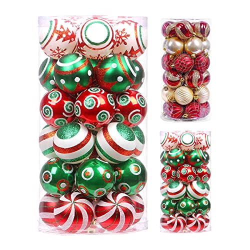 Katolang 30 palline di Natale infrangibili per albero di Natale, decorazioni per albero di Natale, palline di Natale, decorazioni per feste di nozze, colore rosso e verde dorato