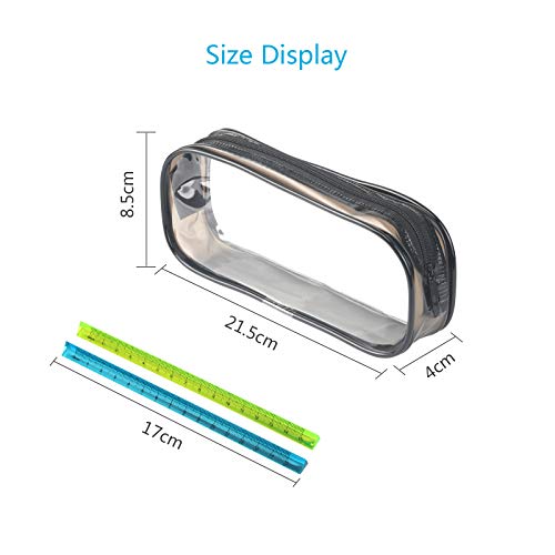 KATOOM Astuccio Trasparente,2 PCS Sacchetto di Matita Trasparente e 2 PCS Righello Triangolare Borsa Multifunzionale Facile da Trasportare Matita Penna Stilografica Gomma Cosmetico