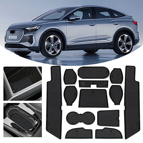 Katsiro - Set di 13 tappetini in gomma per Audi Q4 Etron 2021-2023, per console centrale, antiscivolo, accessori interni con porta bevande, colore: Nero