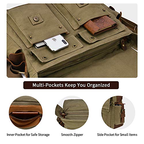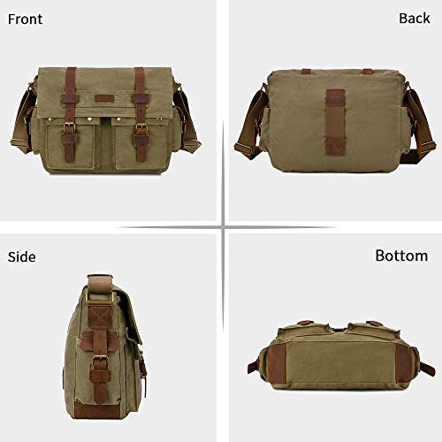 Kattee, borsa a tracolla da uomo, in pelle e tela, capienza per PC portatile da 15 pollici Verde Army Green taglia unica